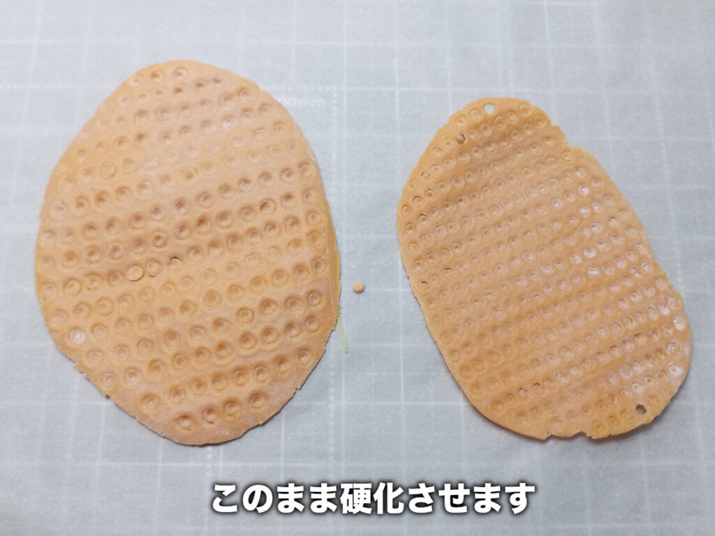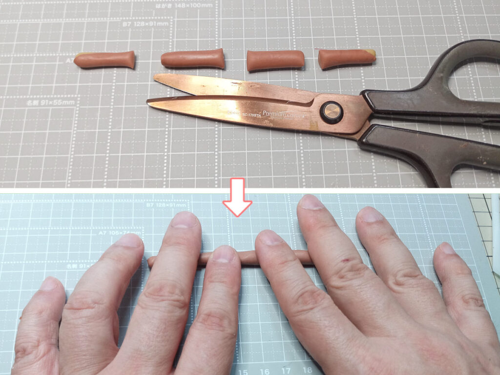 細くしたものをカットして、さらに細く伸ばしたら、しばらく置いて乾燥(硬化)させます。