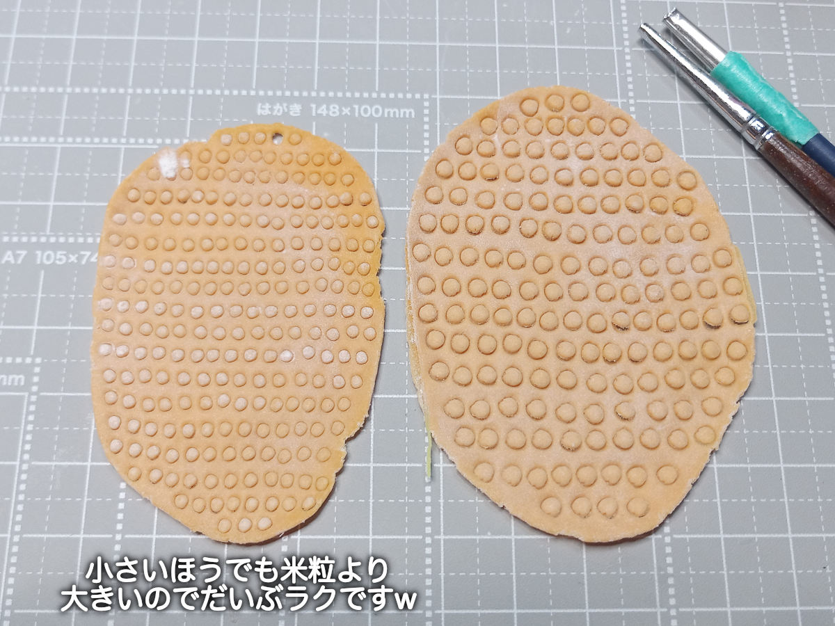 なめこが全部同じ大きさだと気持ち悪いので、2サイズ作ることにしました。