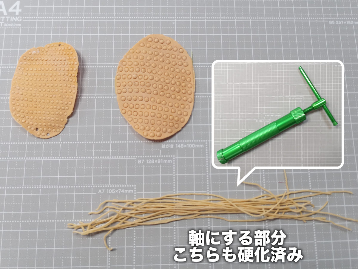 軸にする部分をクレイガンで麺状に絞り出し、硬化させておきます。
