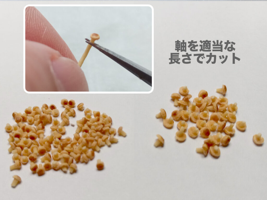米粒や大豆作った時と同じ方法で “なめこの傘” を作ります。