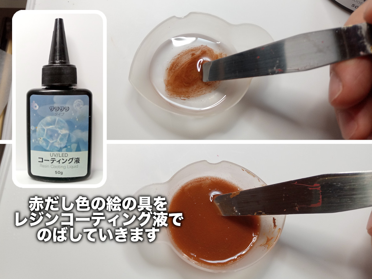硬化後、また赤だしレジンを少し足し→ライト…と数回に分けて慎重に…