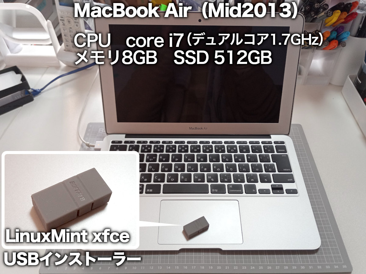 お試し編の時に、USBメモリからLinuxを起動させた この古い MacBook Air 本体のSSDに 「LinuxMint xfce」 をインストールする手順を追っていきます。