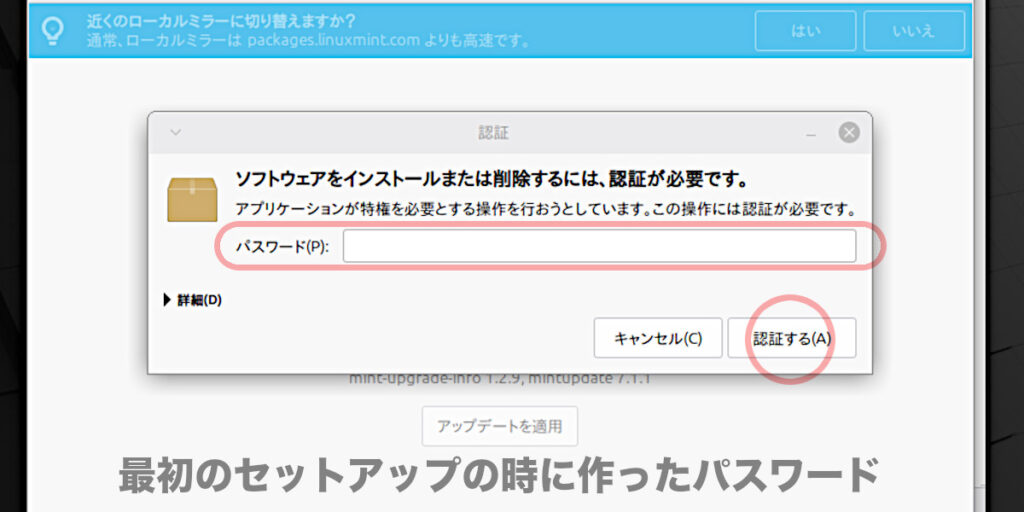 インストール時にマシンのパスワードを聞かれるのはMacでもあるので戸惑うところもなく…